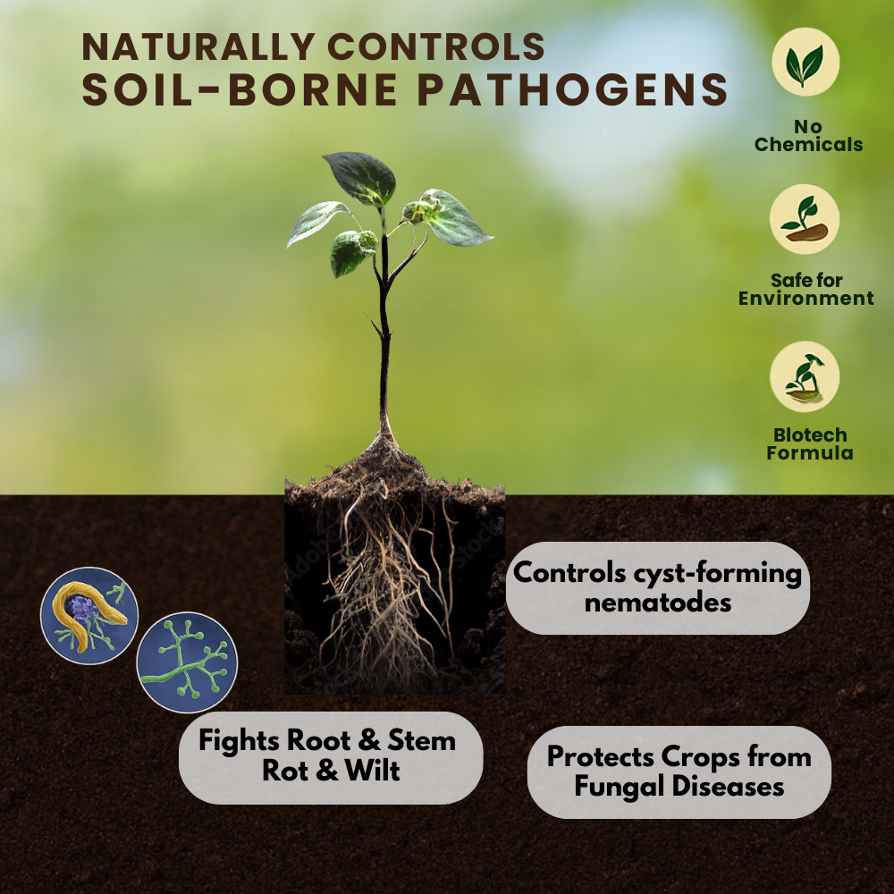 - Soil-borne pathogens cause wilt disease of Tomato & Okra and plant parasitic nematodes specifically Root-knot nematode infecting Tomato and Okra crops. It also controls cyst-forming nematodes by direct parasitism of both eggs and larvae. It is effective against root rot, wilt, stem rot and other disorders.