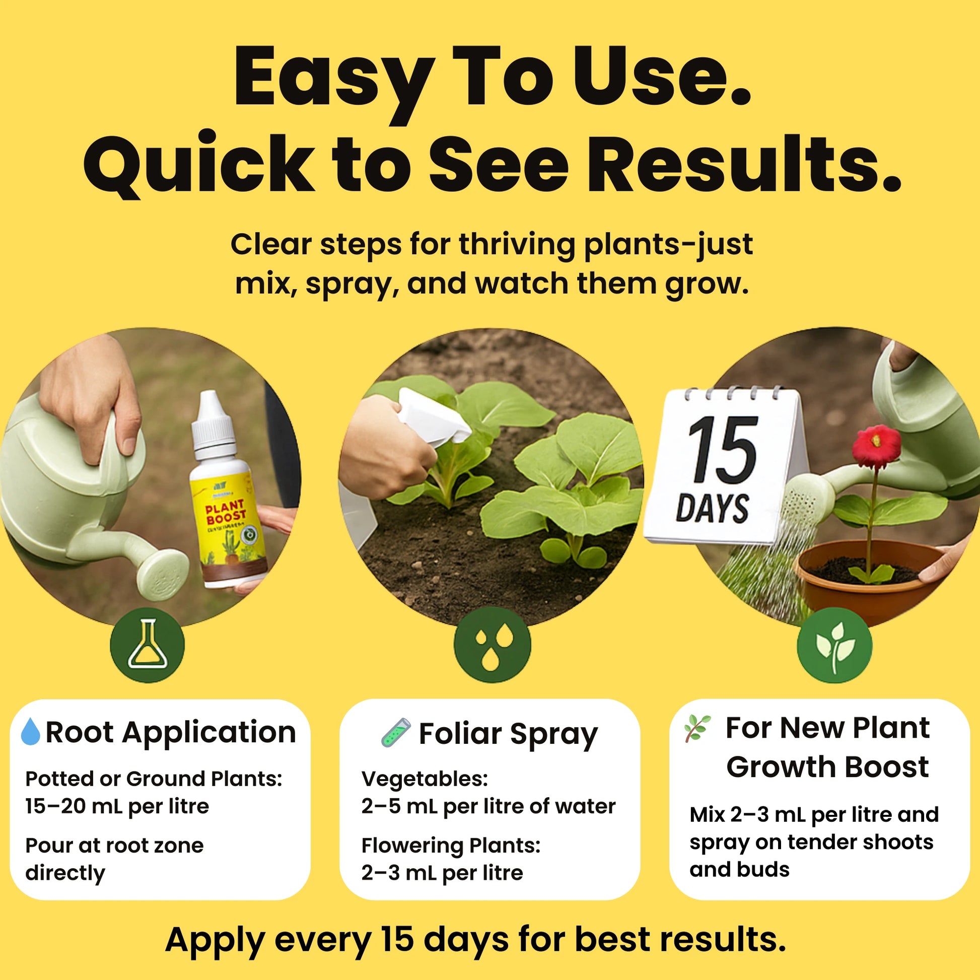 Plant Boost - Liquid Bio Fertilizer, Organic Growth Booster for Faster, Healthier Home Garden Plants, Ideal for Vegetables, Flowers, Herbs & Promotes Healthy Roots (Pack of 3 of 50 ml)