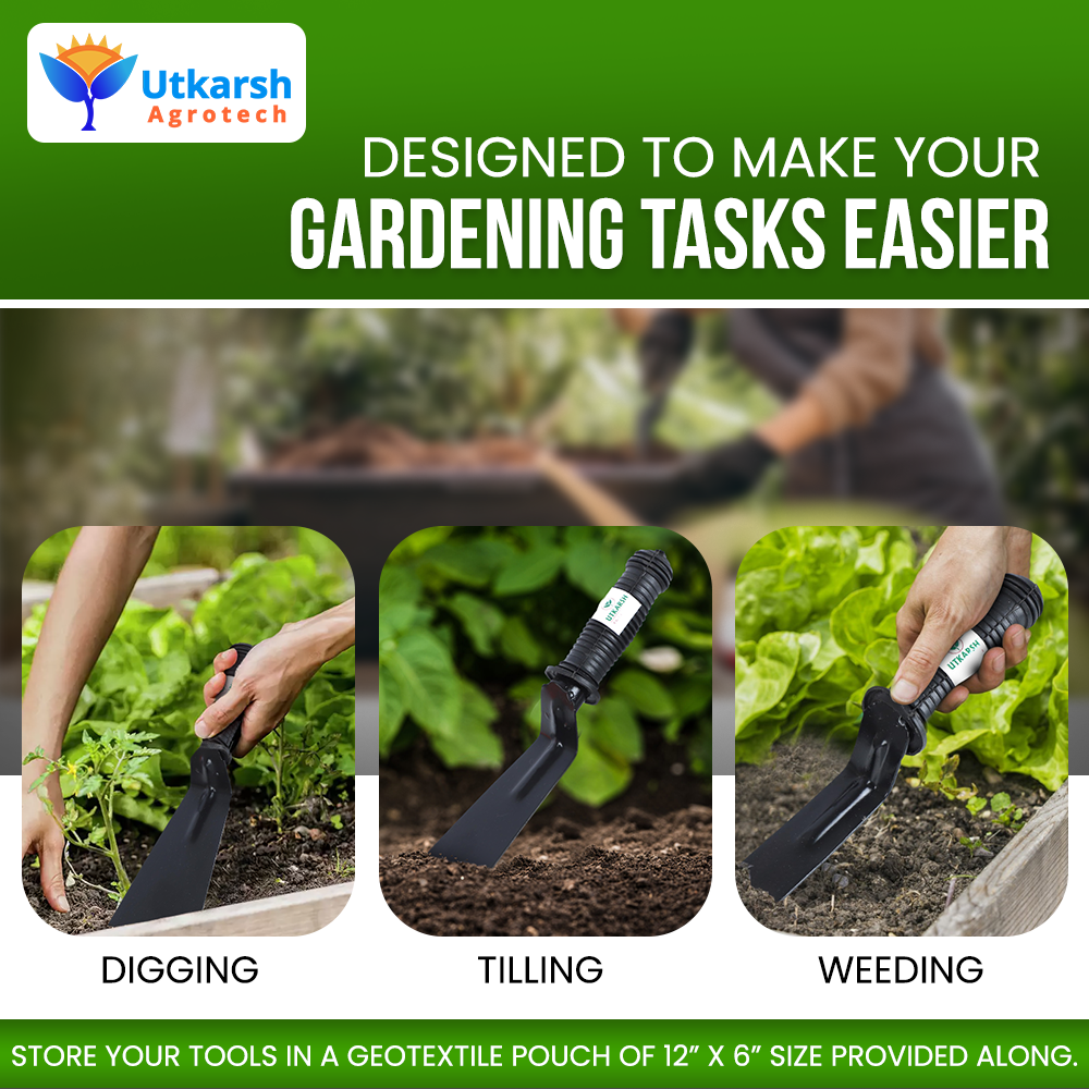 - Versatile Usage: The khurpi is ideal for soil tilling, weeding, and digging; the scissors ensure precise cutting of leaves and stems; and the pruner is perfect for cutting small branches and plant maintenance.