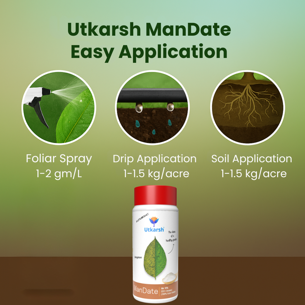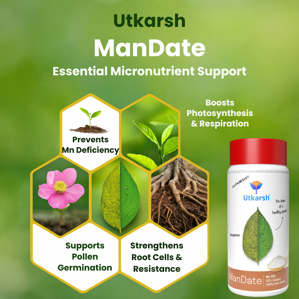- Utkarsh ManDate helps to prevent Manganese (Mn) Deficiencies in different crops occurred gradually at different growth stages of crops.