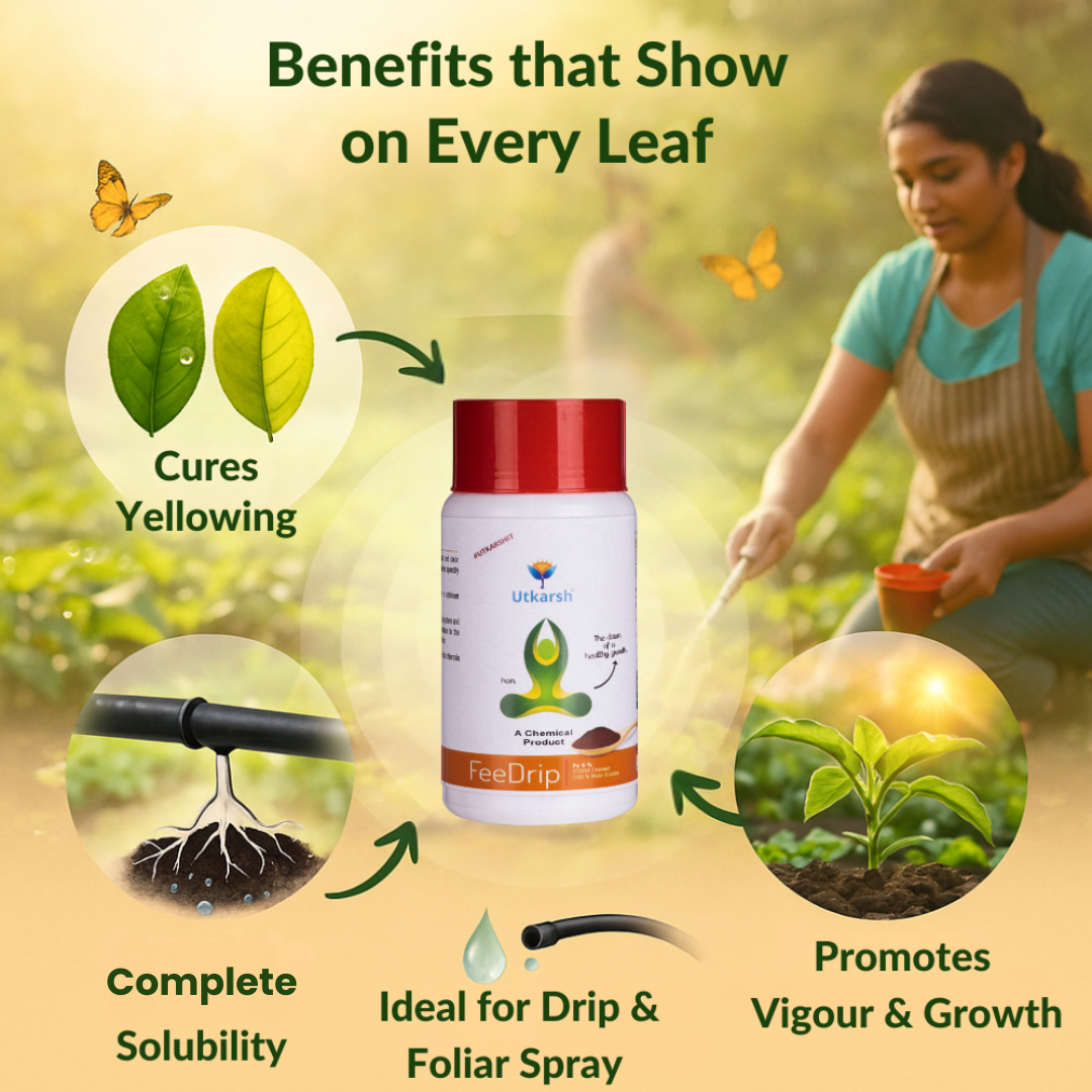 - With its superior solubility, fast action, and sustained benefits, Utkarsh FeeDrip is the ultimate solution for managing iron deficiency and promoting healthy, green, and productive plants.