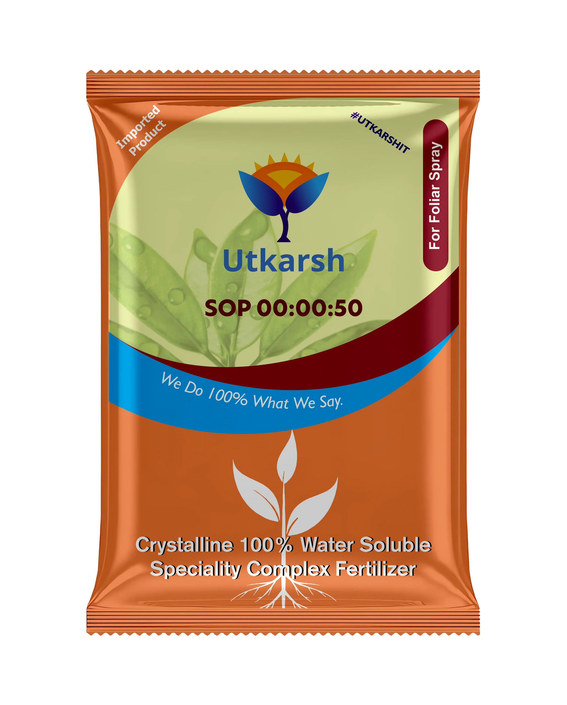 - Utkarsh SOP (00:00:50) is free-flowing, fine crystalline Powder which fully is soluble in water. SOP (00:00:50) can be applied along with all water-soluble fertilizers except calcium fertilizers.