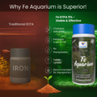 - Fe-Aquarium forms a more stable and stronger iron complex compared to traditional EDTA-based products, making it a more efficient solution. It performs exceptionally well at a pH level of around 6, which is commonly found in healthy aquaponic environments ranging between 6 and 7.5.