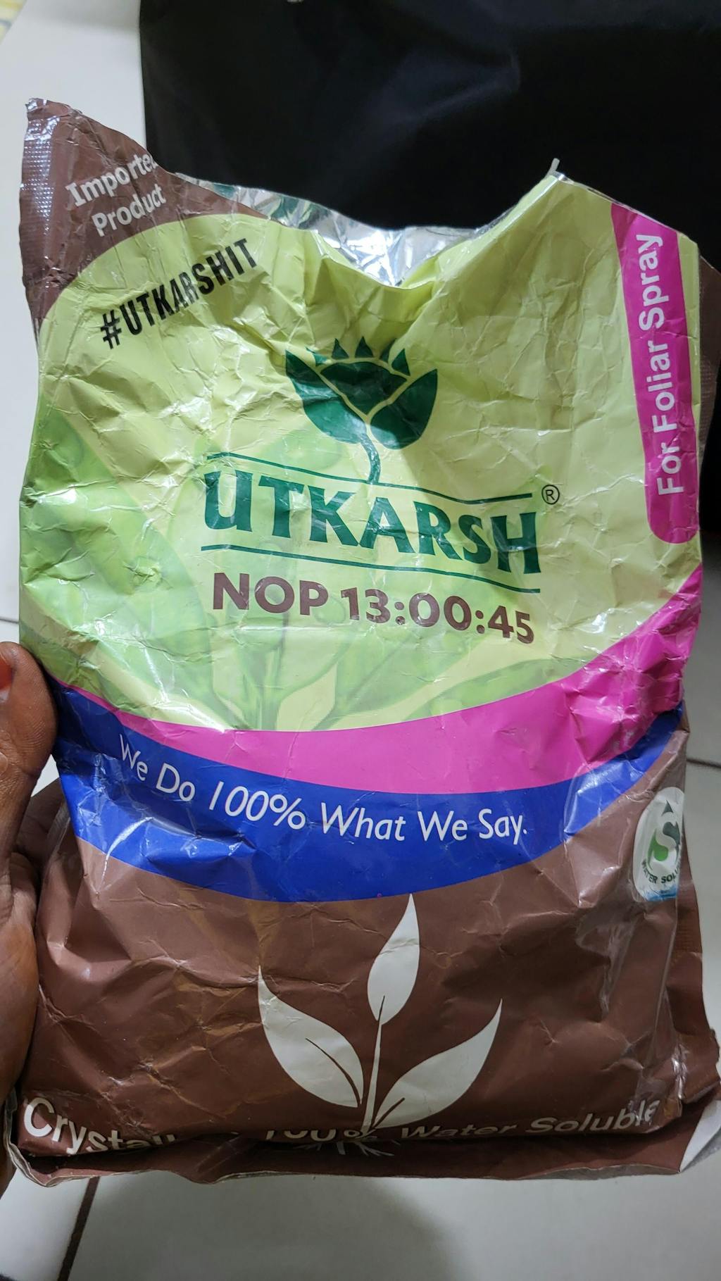 - Utkarsh NOP (13:00:45) is a free-flowing, fine crystalline Powder which dissolves speedily and completely in water to form a spray solution. NOP (13:00:45) is compatible with all water-soluble fertilizers and also a majority of pesticides in foliar application.