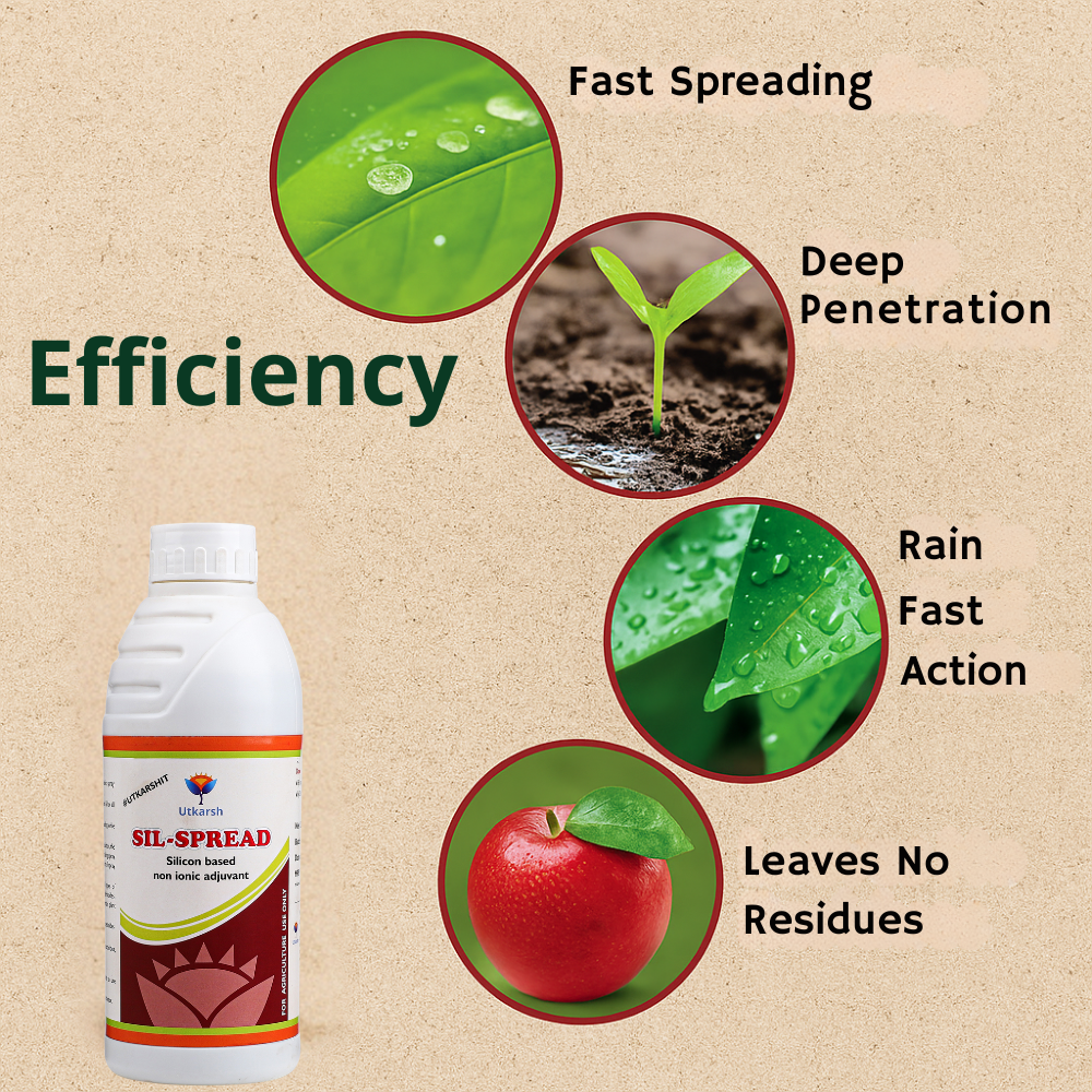 Sil-Spread is a high-performance, silicon-based, non-ionic adjuvant used to enhance the effectiveness of agrochemicals like pesticides, fungicides, and fertilizers. It works by reducing the surface tension of spray solutions, allowing for faster, more uniform spreading and better penetration into plants, and making sprays "rain-fast". It leaves no residues when used with pesticides. It is a very cost-effective product.