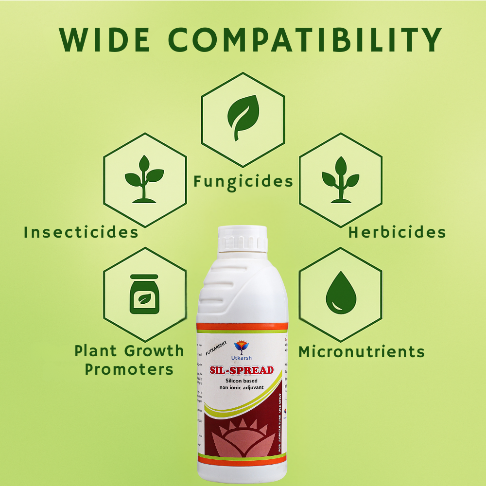 - Broad Compatibility: Sil-Spread is compatible with a wide range of agrochemicals, including insecticides, fungicides, herbicides, water-soluble fertilizers, and plant growth promoters.