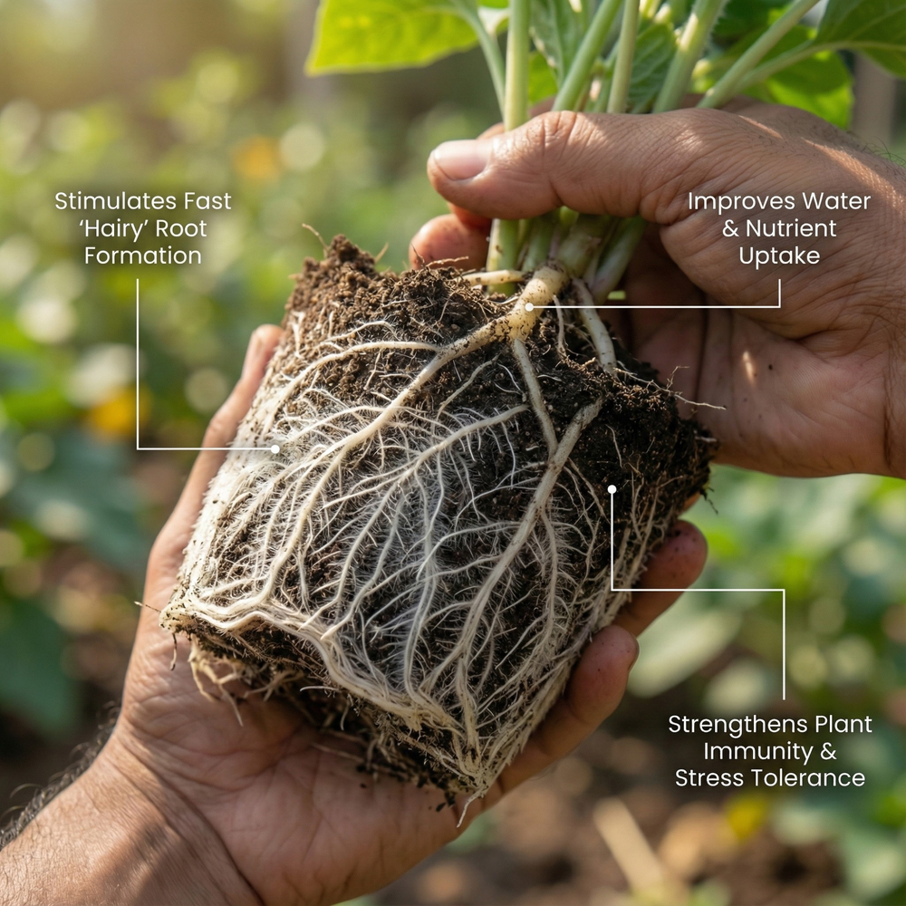 Up to 3× more feeder roots within weeks