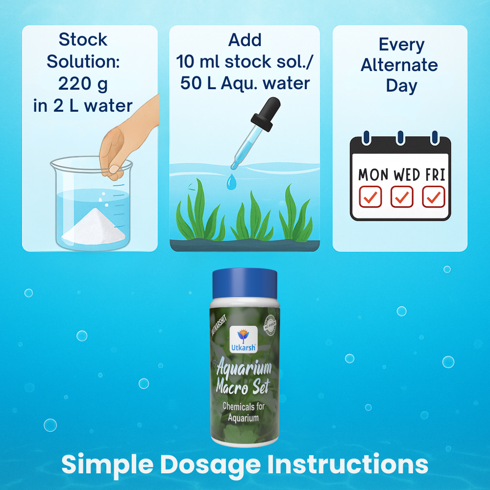 Aquarium Macro Set (Combination of Various Chemicals for Aquarium Plants) | Provides Complete Macronutrient Solution for Healthy Aquarium Plants, Easy to Use and Safe