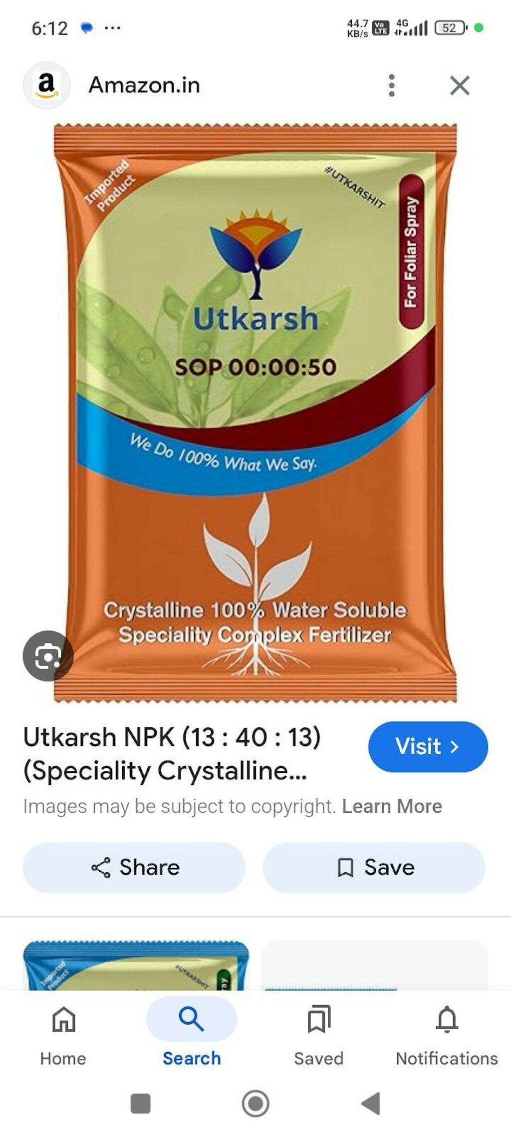• Foliar Spray: Mix 5 gm per liter of water and spray during flowering and fruiting stages for better fruit quality and sugar content.