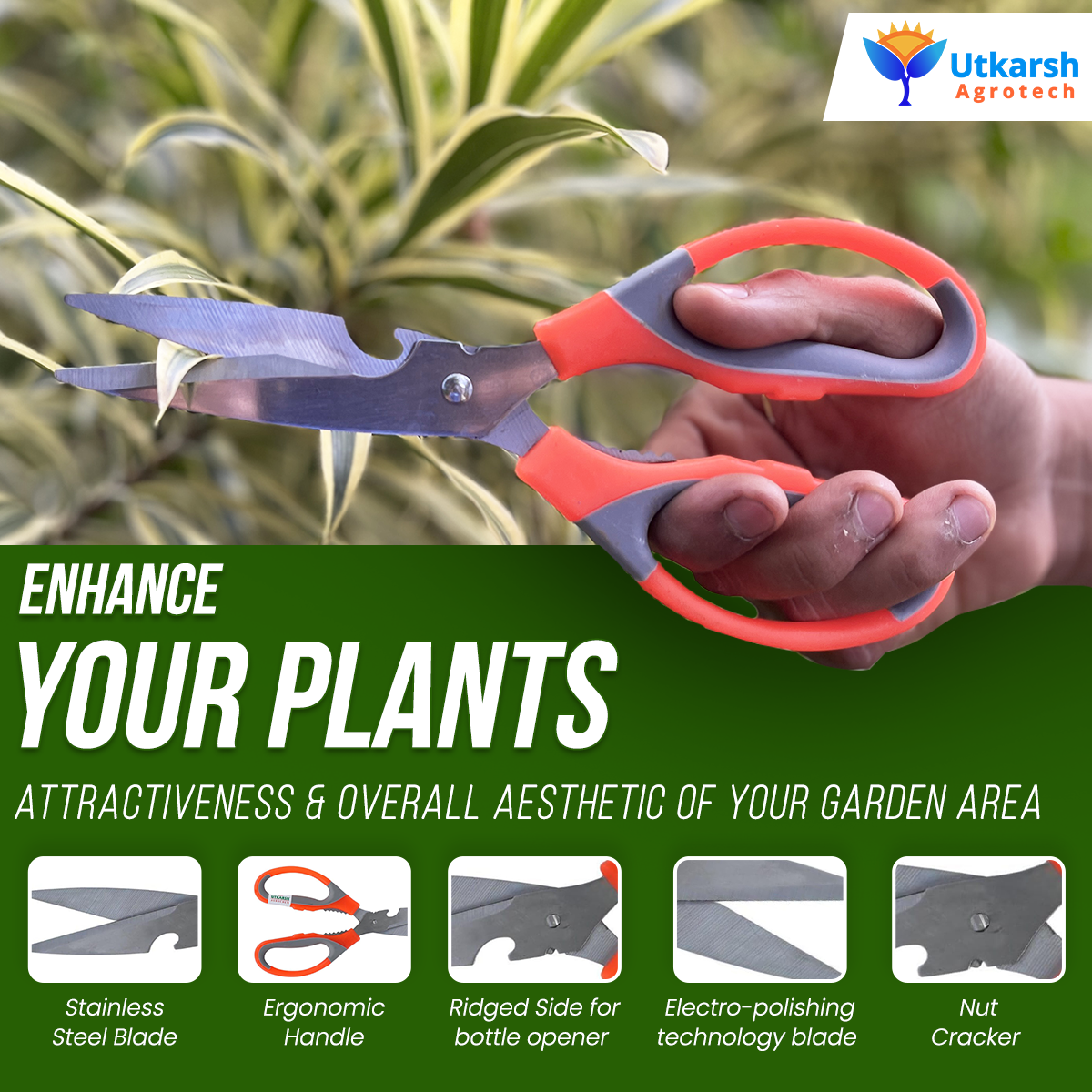 - Sharp & Precise Cutting: The pruner and scissors are equipped with stainless steel blades designed for clean, accurate cuts on plant stems, small branches, and leaves—ideal for plant health and growth.
