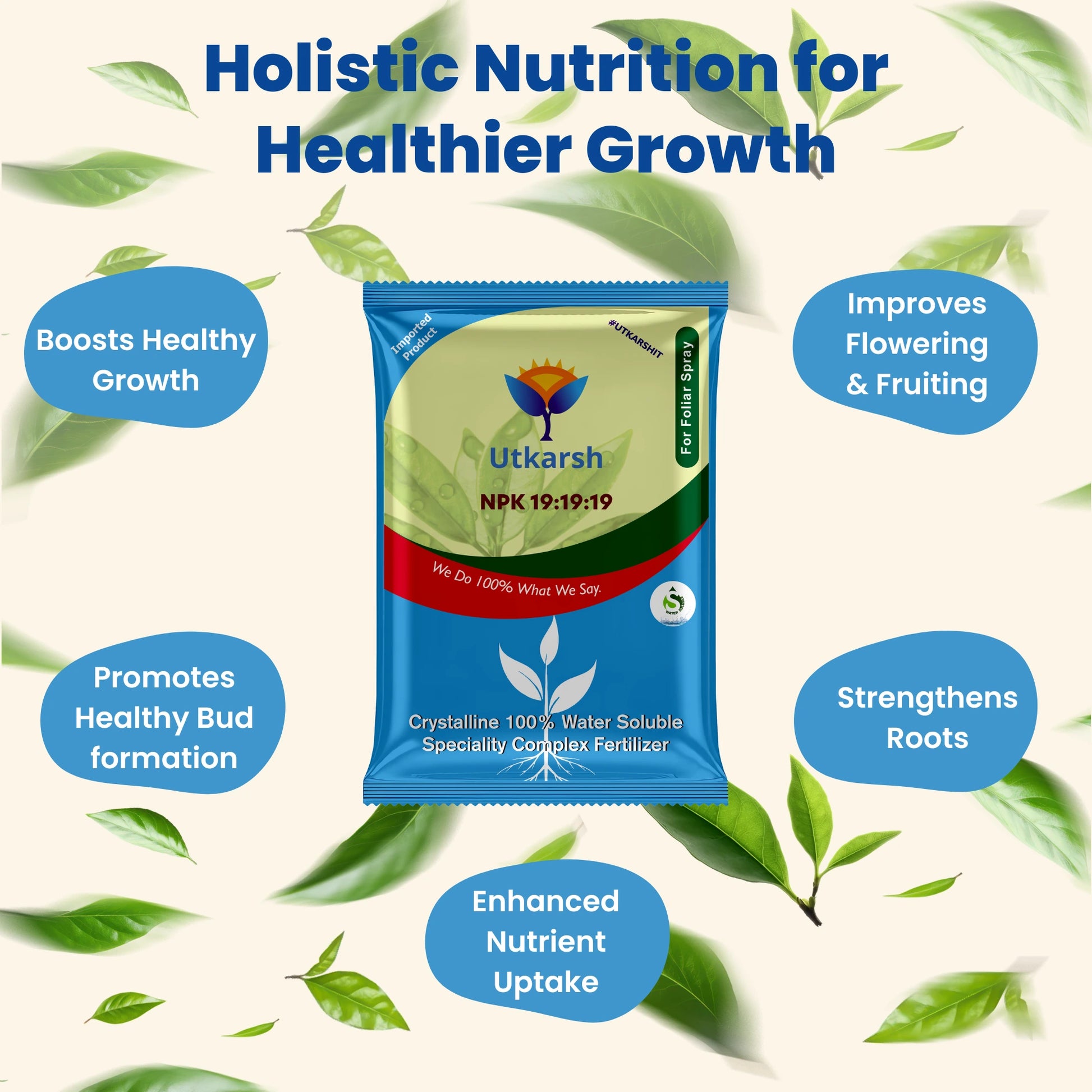 - Utkarsh NPK (19:19:19) ensures safety and purity for plants and soil.