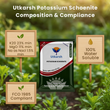 - Utkarsh Potassium Schoenite is a COMPLIANT PRODUCT as per Fertilizer Control Order (FCO) 1985 under Schedule 1(c) containing water-soluble Potassium (as K2O) 23% minimum and Magnesium as (MgO) 11% minimum.