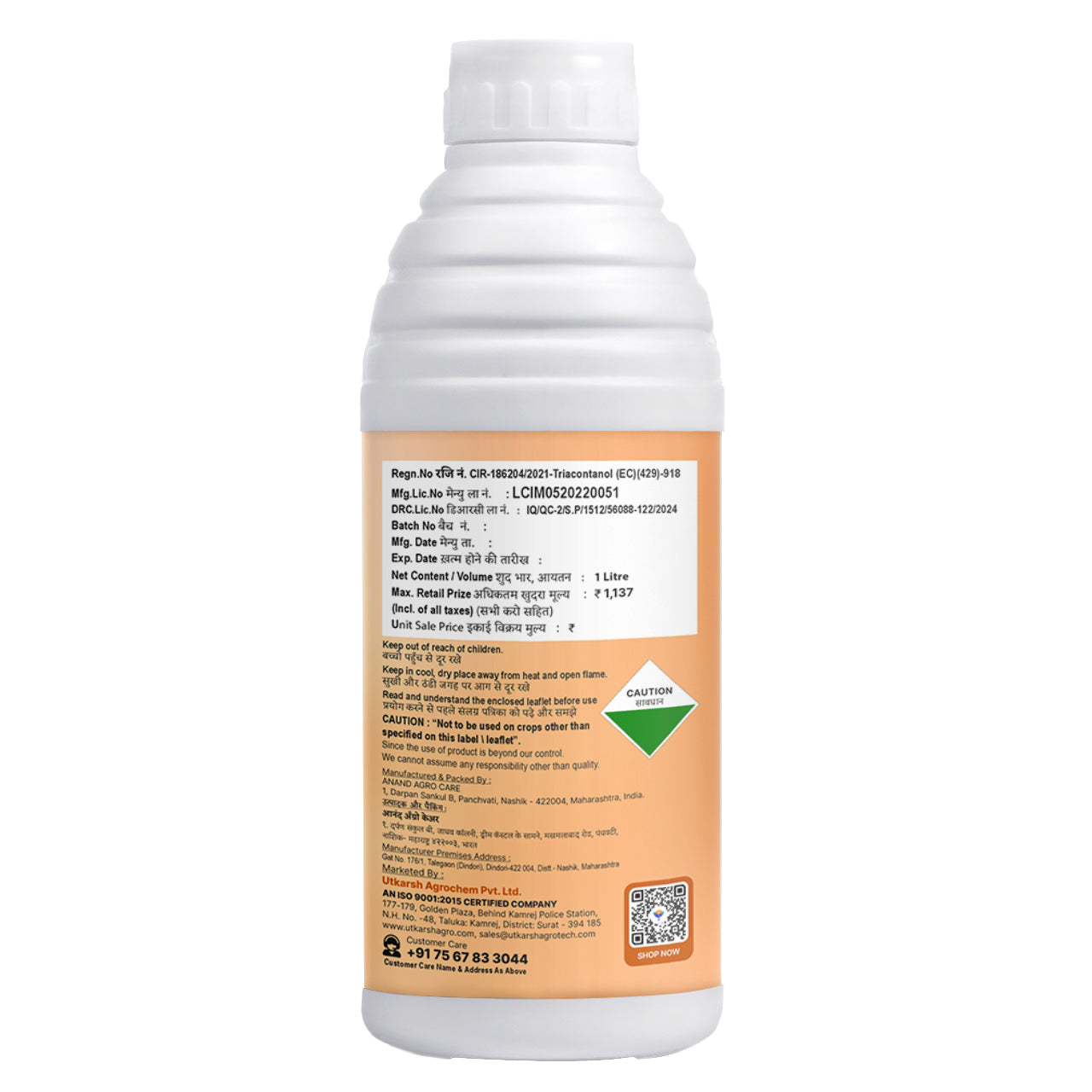 Utkarsh Quonta contains Triacontanol 0.05%EC, is a Plant growth regulator that helps to increase the rate of photosynthesis resulting in better plant growth and product quality.