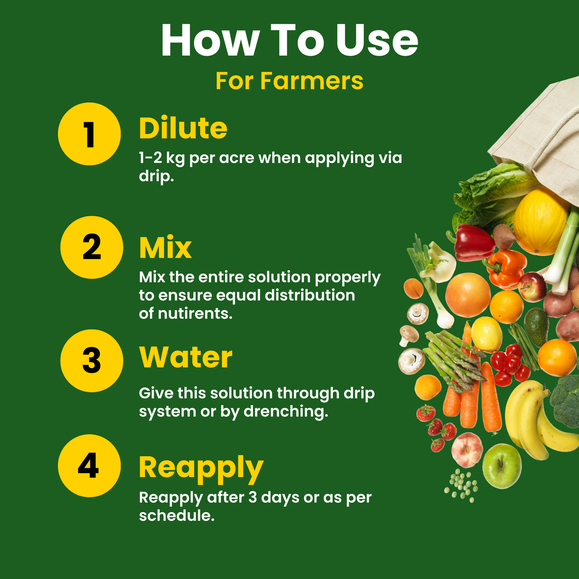 SOP (00:00:50 + 17.5 S) (Potassium Sulphate- K2SO4 100% Water Soluble Fertilizer, Foliar Spray Nutrition) Improves Overall Fruit Quality, Size, Color, Shining & Sugar Content in Plants