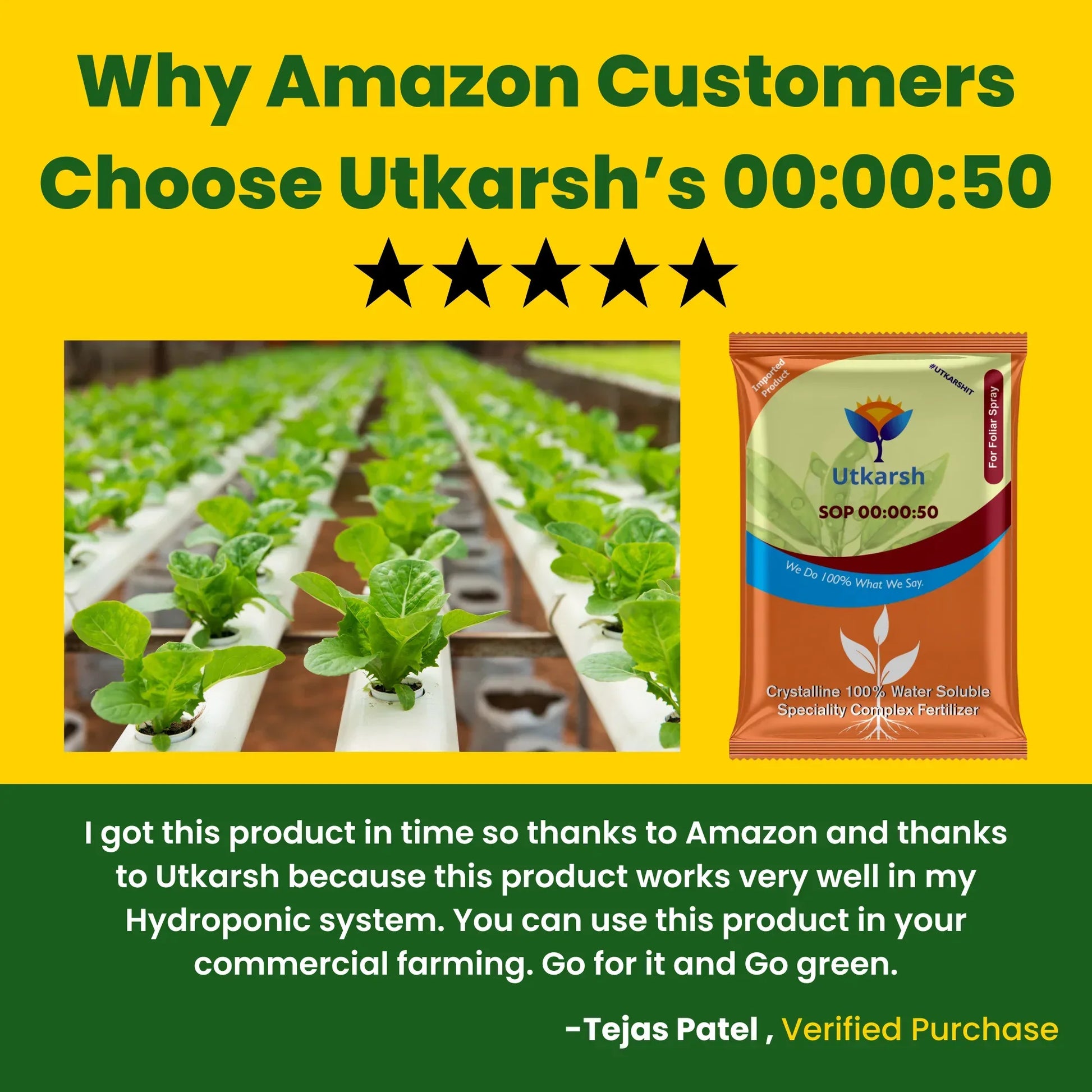 SOP 00 00 50 - Potassium Sulphate for Plants Growth, 100% Water Soluble Powder, Foliar Spray Nutrition | NPK Fertilizers for Home Garden & Crops - Utkarsh Agrochem Pvt ltd.