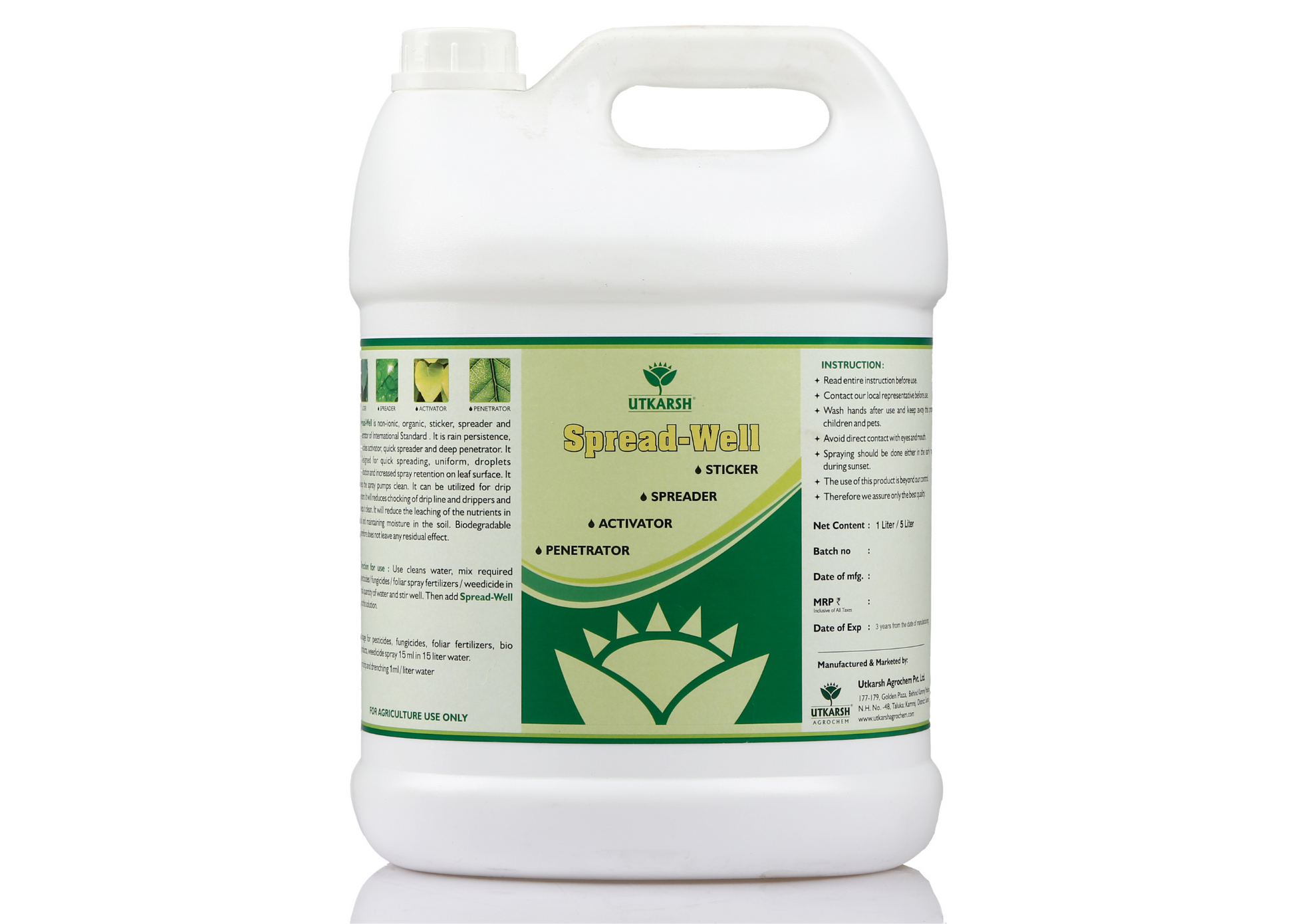 - Effective Function: Utkarsh Spread Well is a non-ionic plant input based on Silicone. It is an efficient organic sticker, quick spreader, pesticide activator, rain persistence and deep penetrator. It adequately aids in the uniform distribution of seeds or fertilizer across the field that supports achieving the plant growth consistently and simultaneously, maximizing the effectiveness of fertilizers.