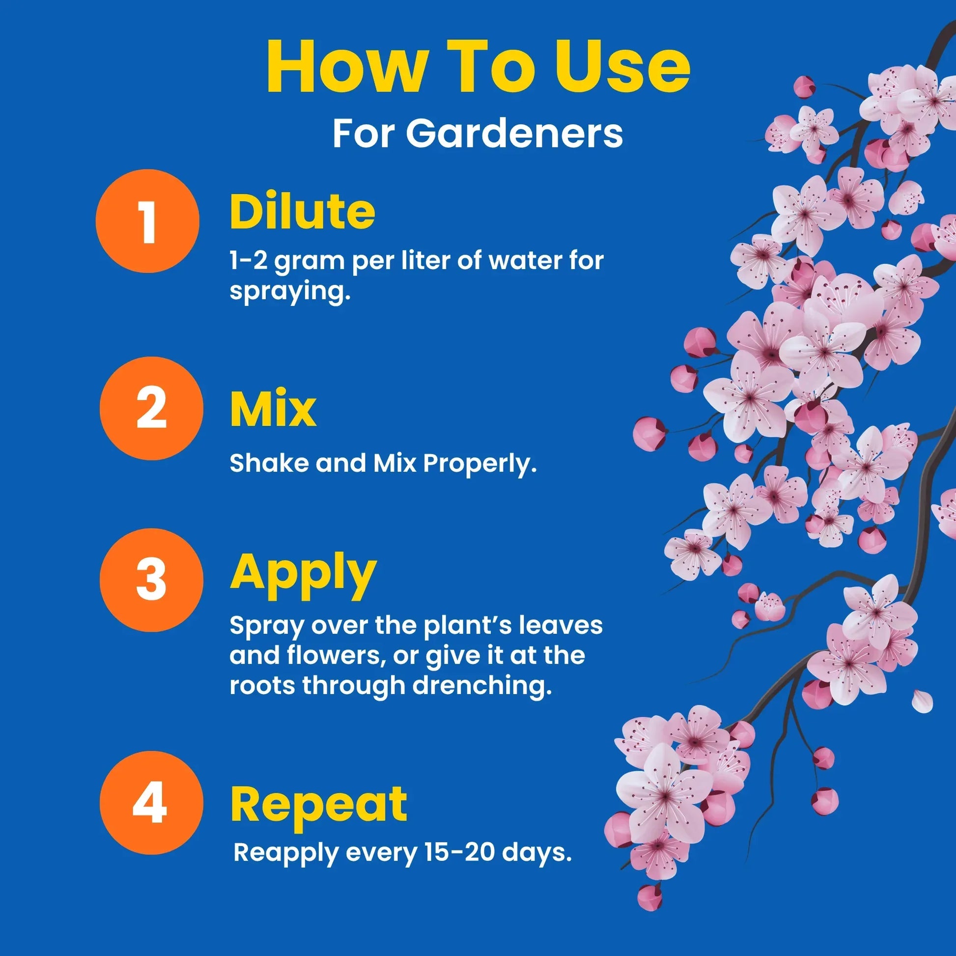 - Drip and Soil Application: 1-1.5 Kg/Acre