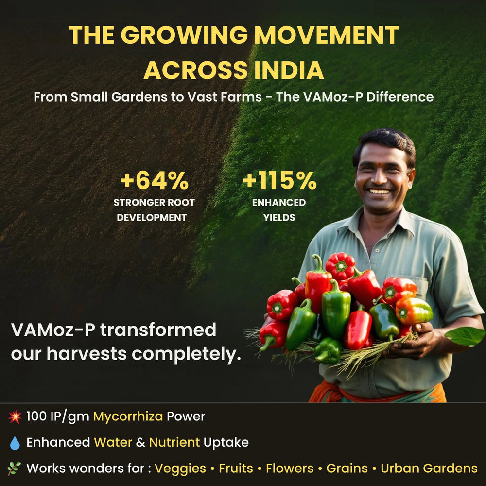 Mycorrhiza with 100 IP/gm, Bio Fertilizers for Healthy Plants, Vigorous Stem Girth, Enhances Nutrient Absorption, Water Uptake & Soil Aeration | VAMoz-P